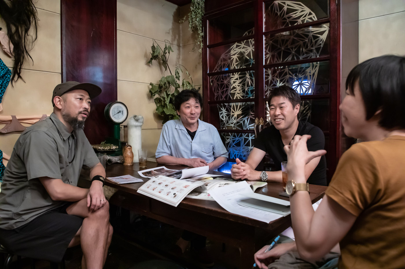 左から内藤正雄さん、稲吉稔さん、伊藤康文さん。2019年7月某日、会場になったtenjishitsu:Tür aus Holz 常盤町にてお話をお聞きした